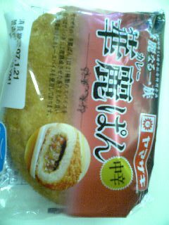 とうとう買ってしまいました! カレーなる否、 華麗なる一族コラボの華麗ぱん! 味はですね、 普通のカレーパンです。 でも、食べた後に後悔・・・ カロリー高いです(涙) -