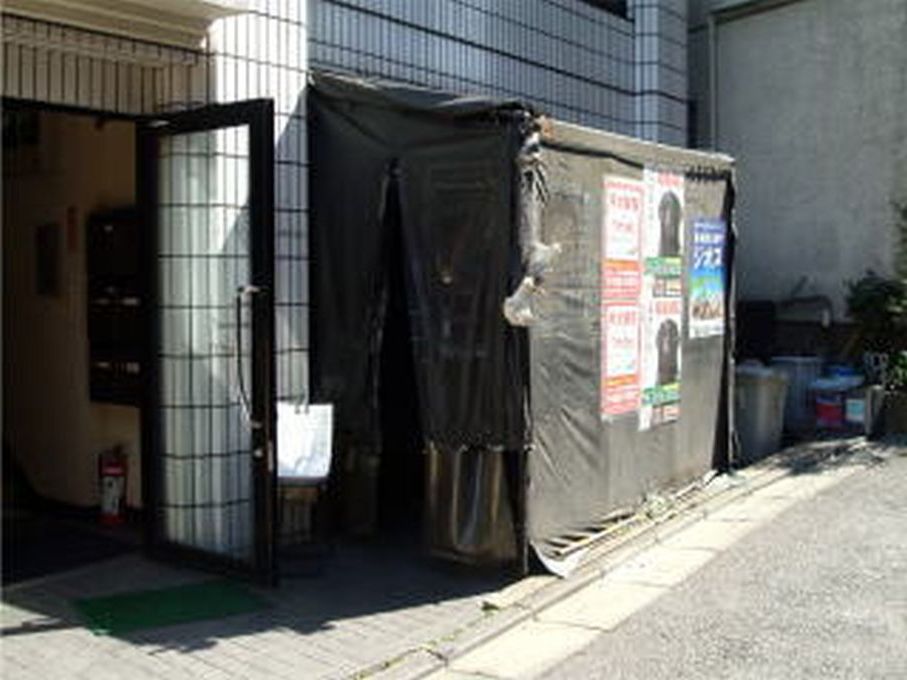 外は黒いビニールシートで覆われていて、