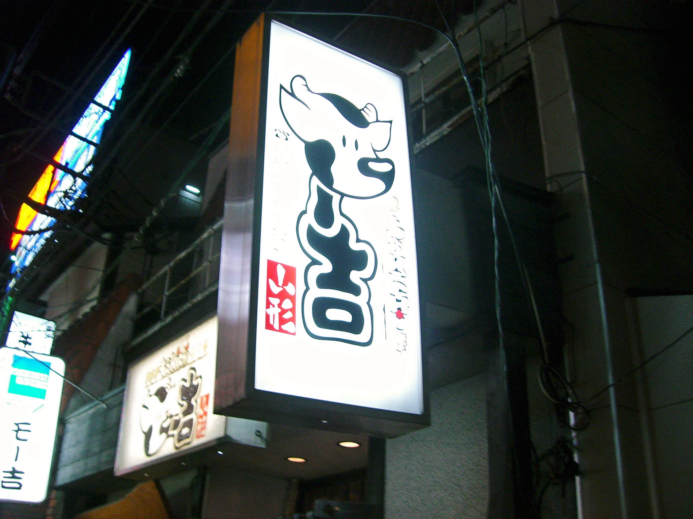 会社の飲み会でかわいい牛の看板が目印の
